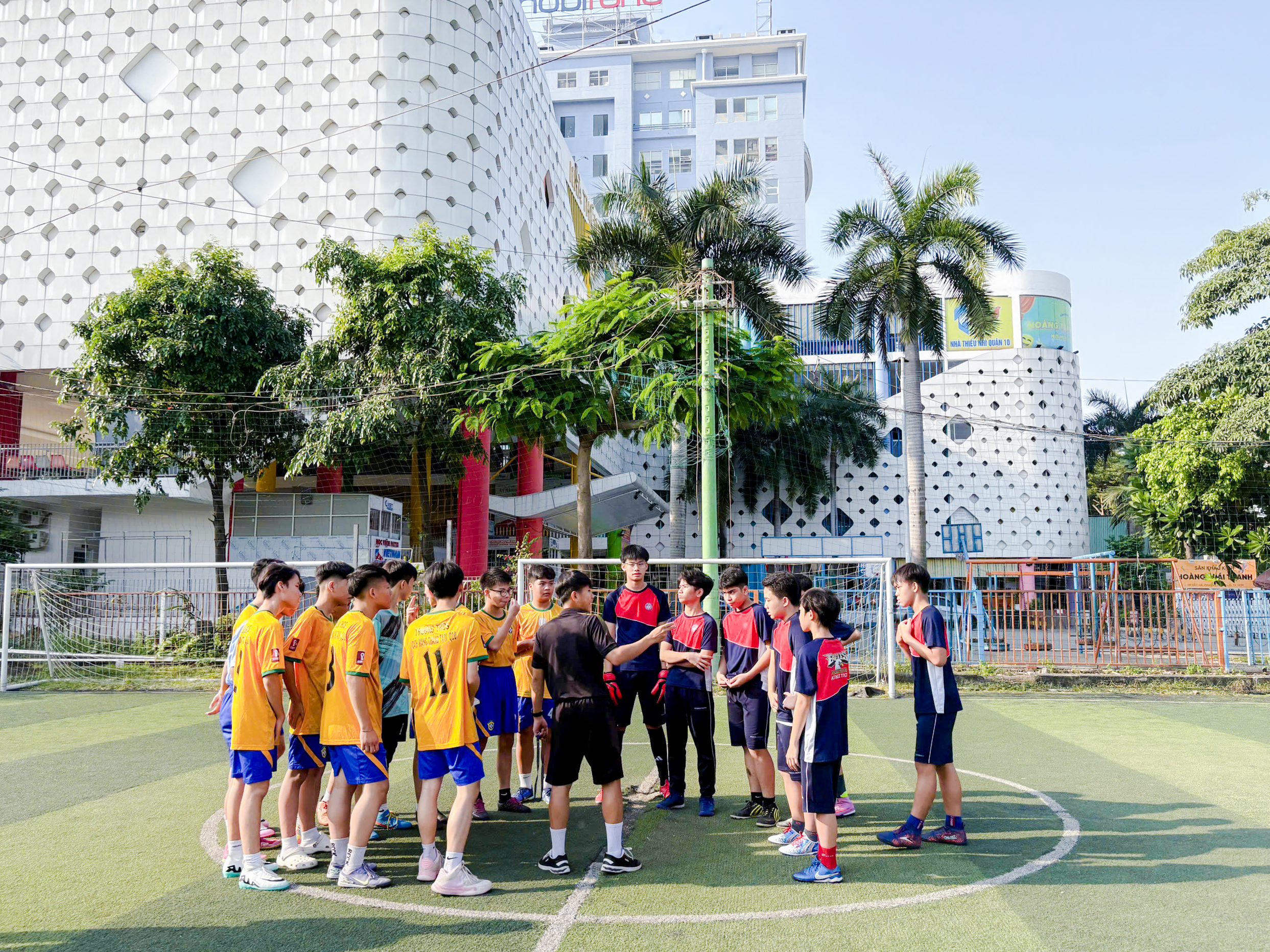 Ở bộ môn Bóng đá, em Phạm Quang Thiều đã chia sẻ về hành trình đầy nỗ lực của cả đội từ những buổi tập kéo dài nhiều tuần để nắm vững các kỹ năng cơ bản, rèn thể lực đến việc lên chiến thuật để cả đội phối hợp ăn ý, từng thành viên đã không ngừng hoàn thiện bản thân dưới sự hướng dẫn tận tình của huấn luyện viên. “Để chuẩn bị cho giải đấu, đội bóng của chúng em đã tập luyện liên tục trong nhiều tuần. Chúng em đã tập từ những kỹ năng cơ bản như chuyền bóng, sút bóng, kiểm soát bóng cho đến các bài tập thể lực và lên chiến thuật phối hợp đồng đội. Nhờ sự hướng dẫn tận tình của huấn luyện viên, từng thành viên trong đội dần tiến bộ hơn và hiểu nhau hơn trên sân.