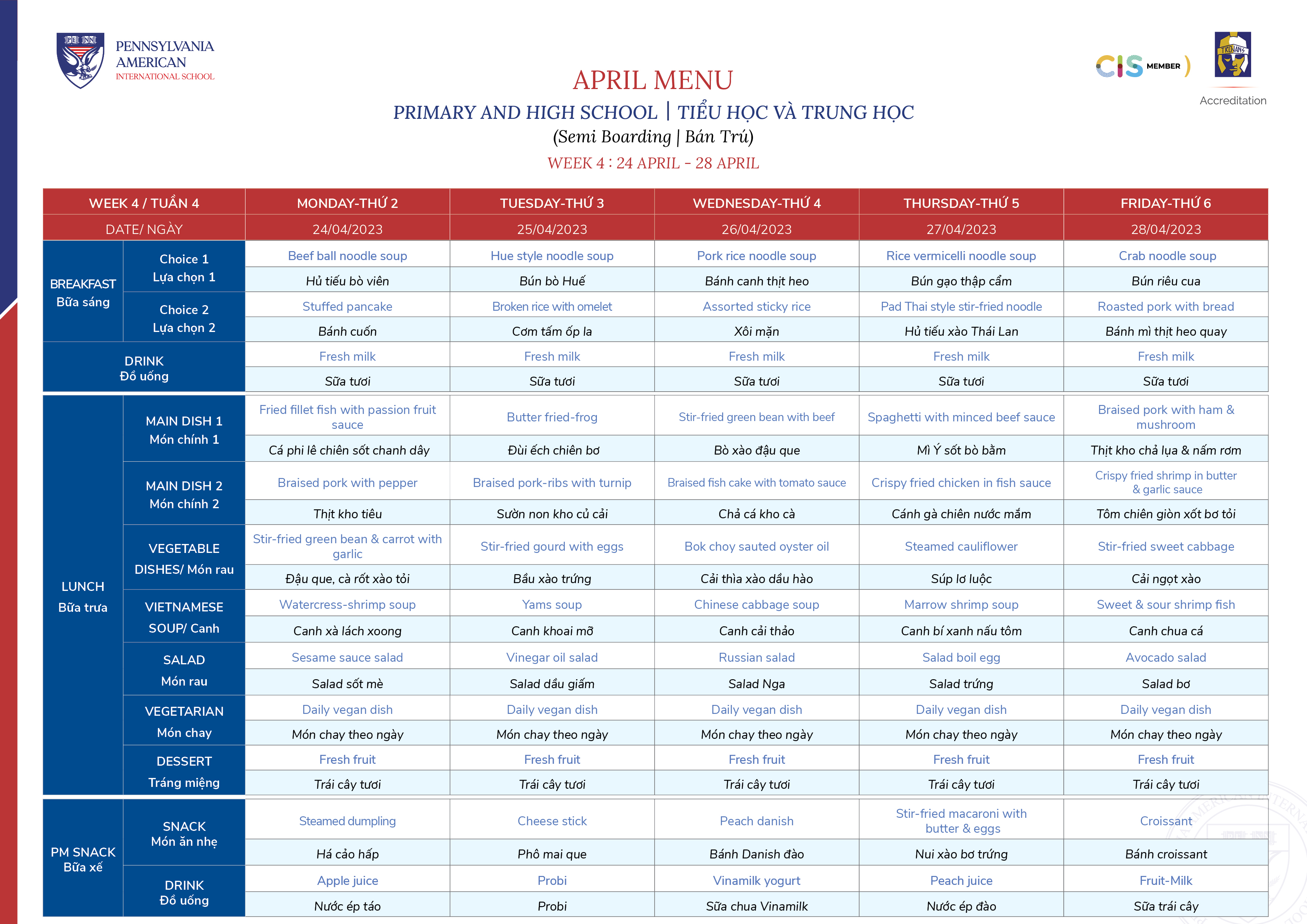 April 2023 Menu
