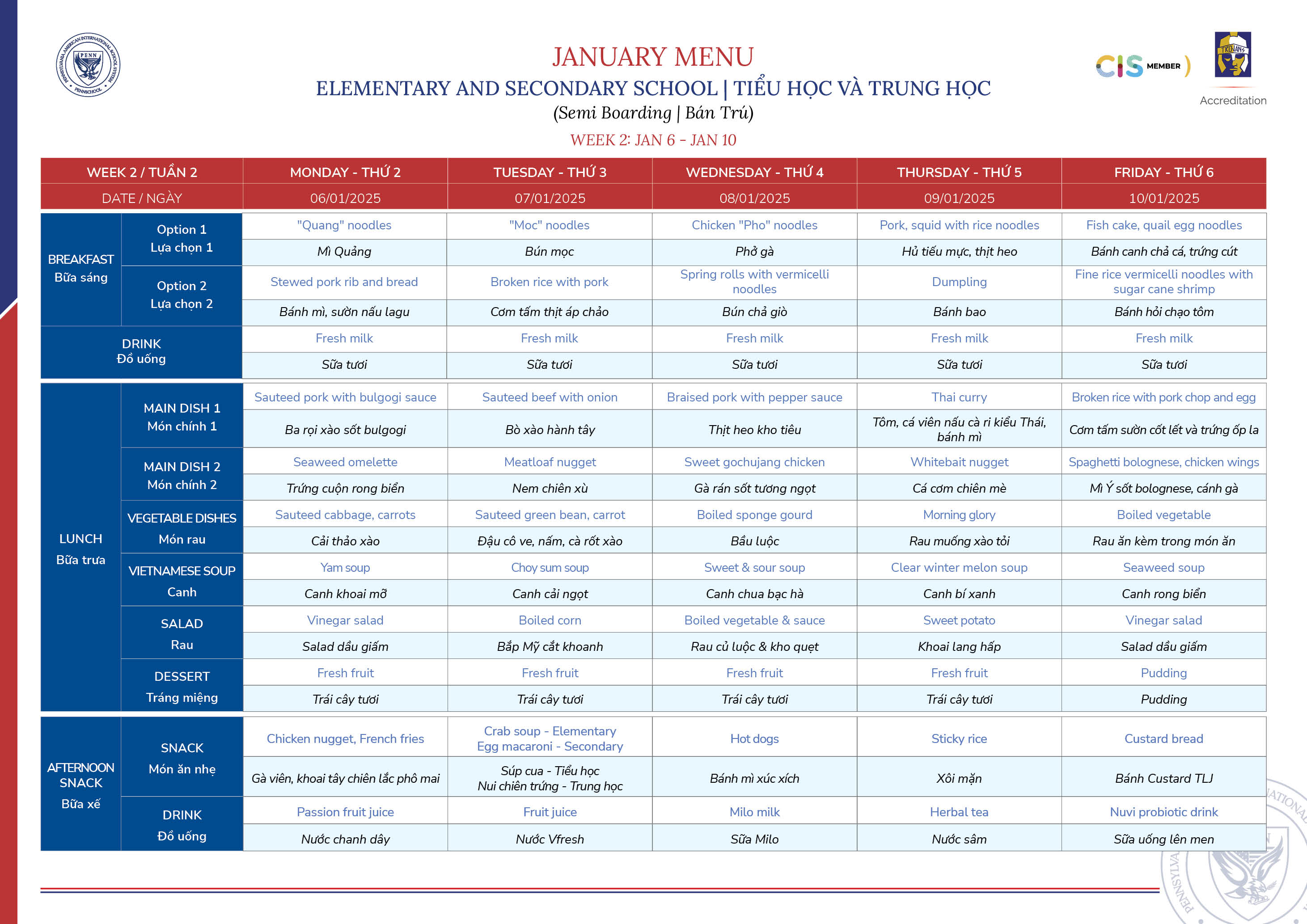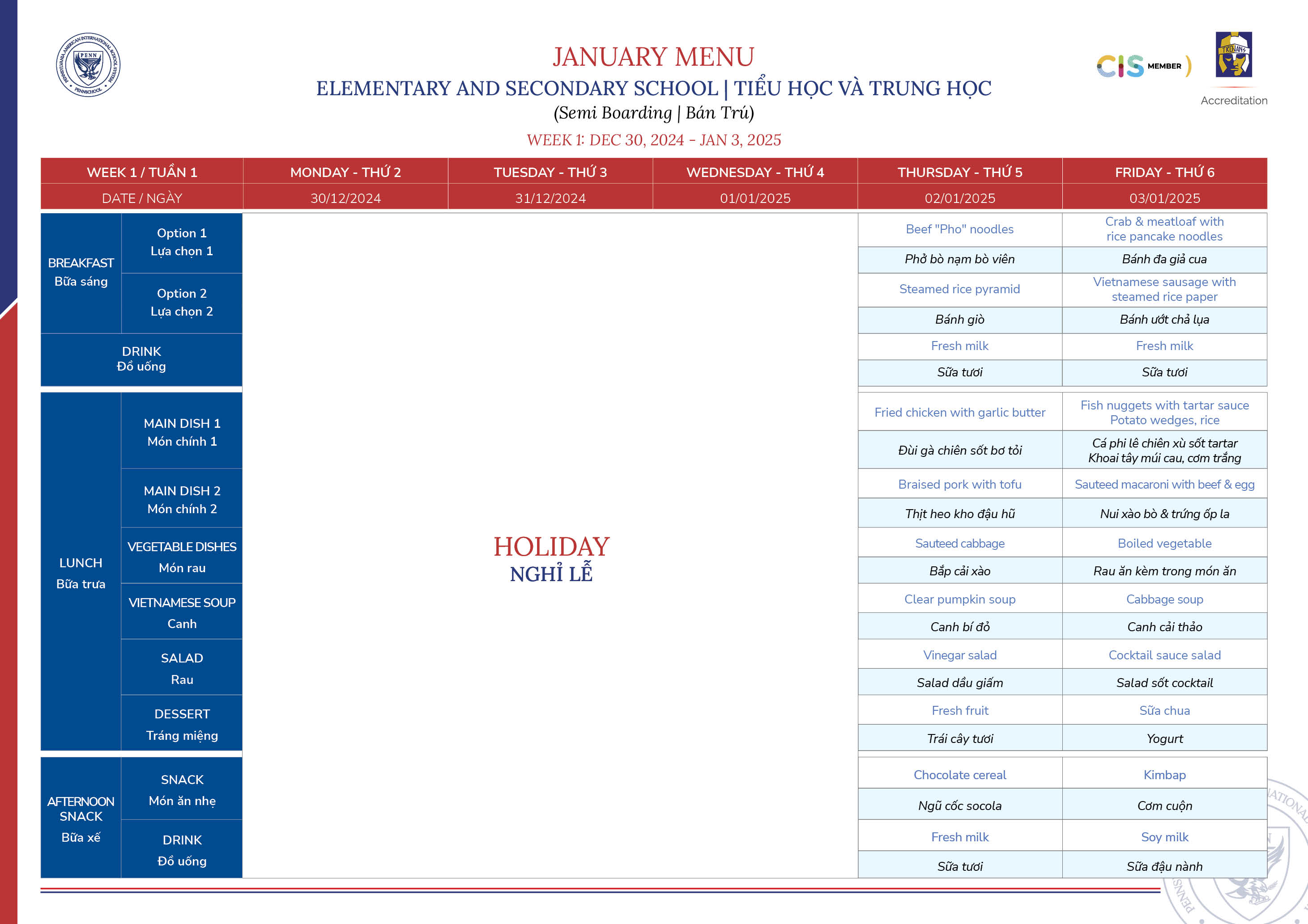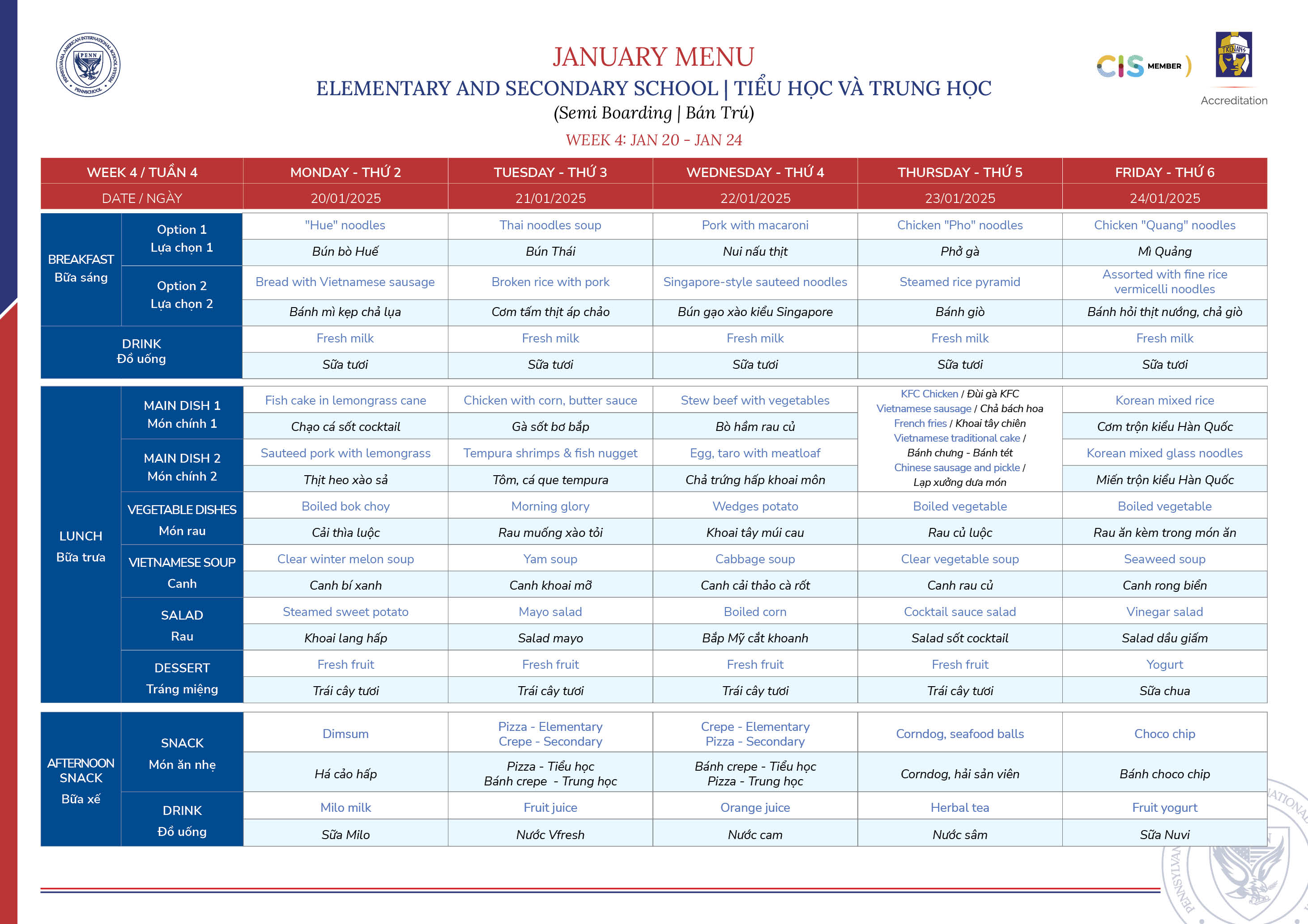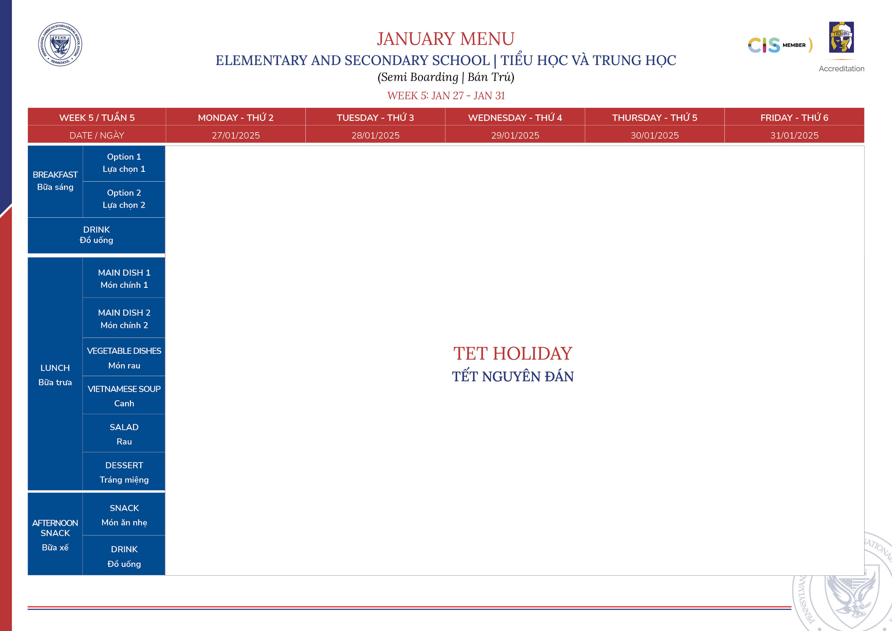 January 2025 Menu
