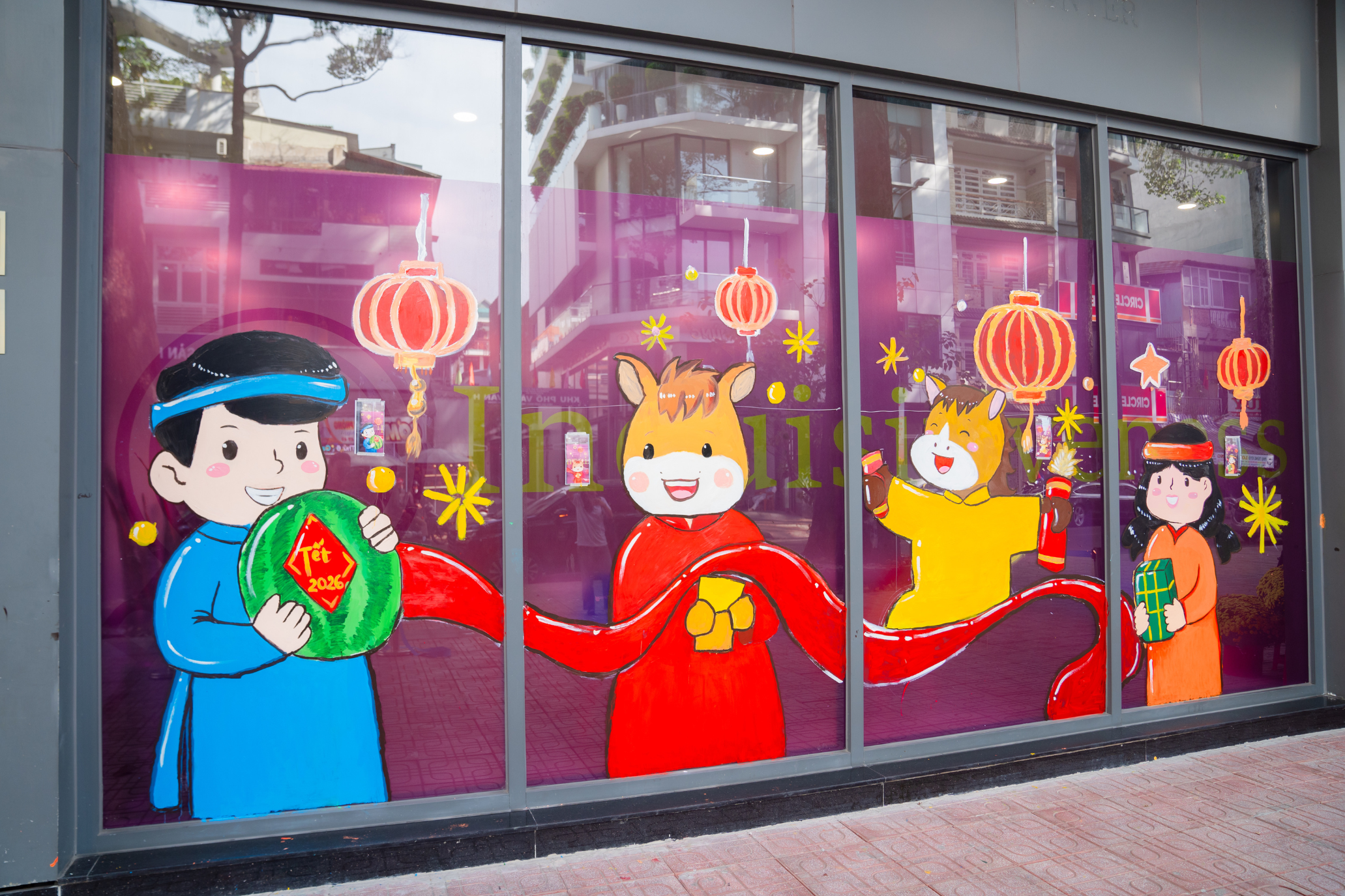 Điểm nhấn đặc biệt trong mùa Xuân năm nay chính là sự chung tay sáng tạo của các #HomeOfTheEagles. Các em học sinh đã tự tay “khoác chiếc áo mới” cho các ô cửa kính tại các cơ sở bằng những bức tranh Tết sinh động với hình ảnh mâm cỗ ngày Xuân, nồi bánh chưng xanh, dưa hấu đỏ hay những chú ngựa được nhân cách hóa đầy vui tươi. Mỗi tác phẩm không chỉ góp phần làm đẹp không gian trường học, mà còn thể hiện sự thấu hiểu và trân trọng những giá trị văn hóa truyền thống dân tộc của các em.